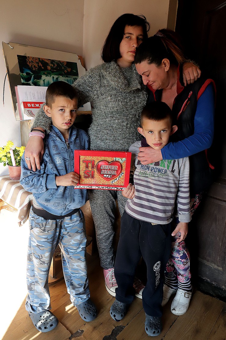 Deca, Urošu je sedam, Milošu devet, a Tamari 14 godina, stiskaju se uz majku na kauču, u jednoj od tri prostorije nevelike kuće. U jednoj sobi su tri kreveta, tu spavaju deca, u drugoj, koja je ujedno i kuhinja, spava Slavica.